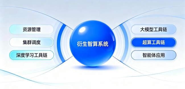衍生智算系统是一套集资源管理、集群调度、深度学习工具链、大模型工具链、超算工具链、智能体应用于一体的全栈工具软件平台。