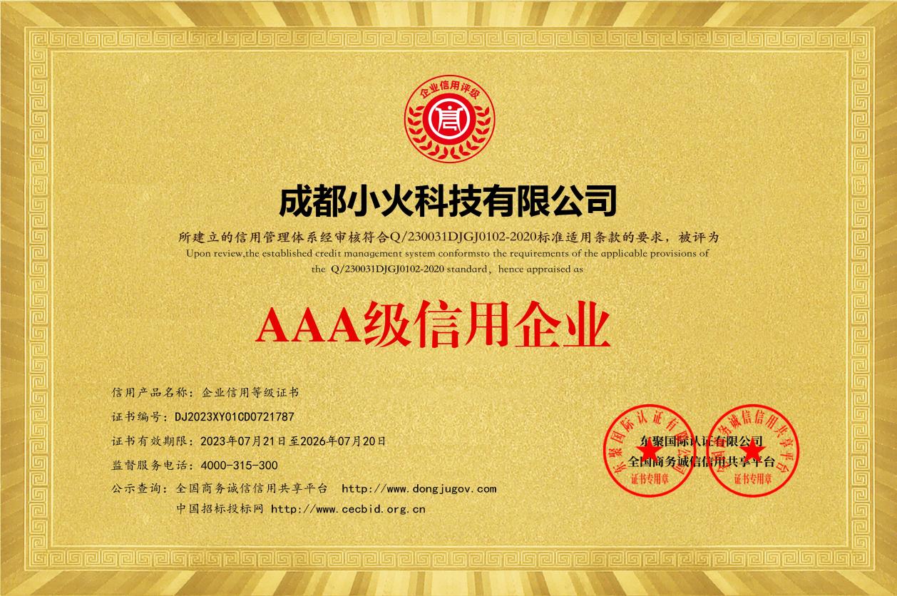 成都小火科技公司是AAA级信用企业
