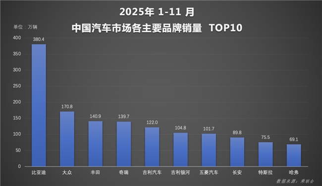 从累计数据看,2025年前11个月比亚迪累计销量418.2万辆,同比增长11.3%,年度销量目标完成率超九成。随着12月市场进入冲刺阶段,比亚迪有望超额完成全年目标。